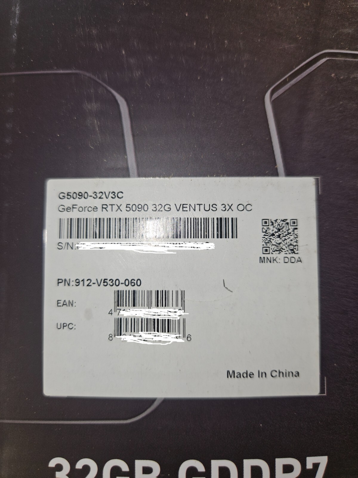 912-V530-060 GeForce RTX 5090 32G VENTUS 3X OC MSI NVIDIA