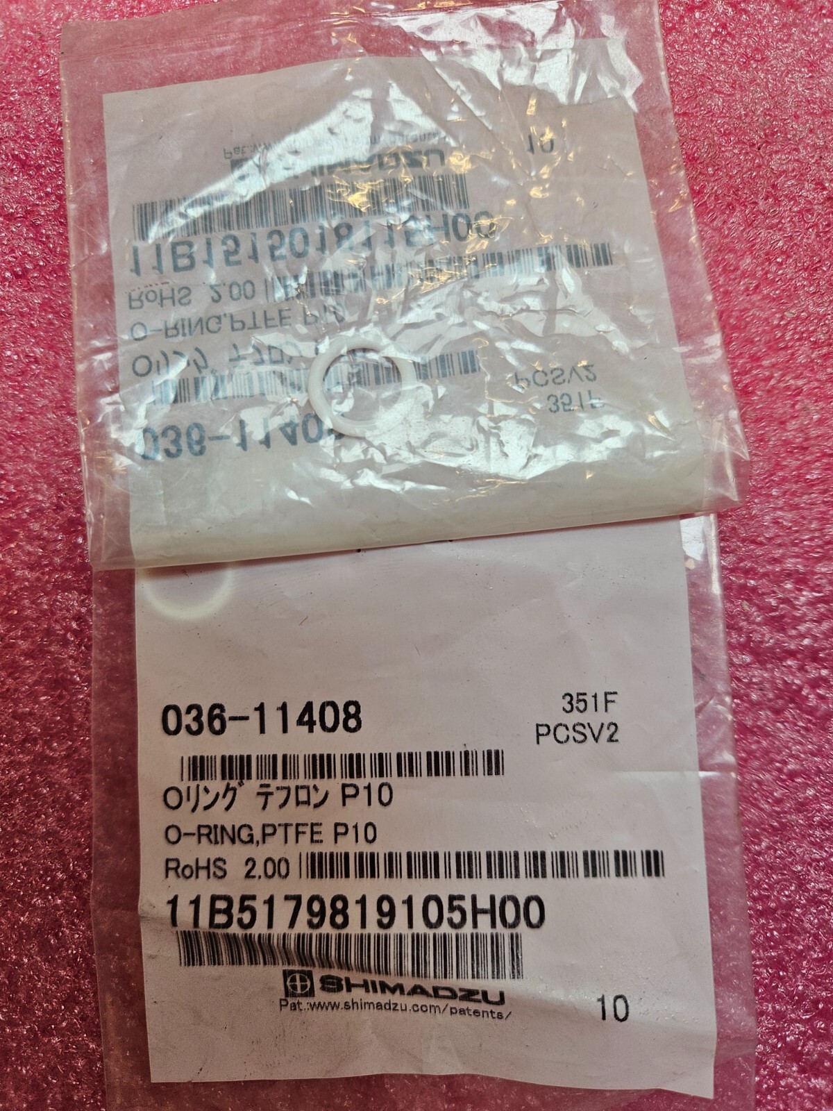 Shimadzu Part Number: 036-11408 O-RING, PTFE P10 – 2 units (two pieces)